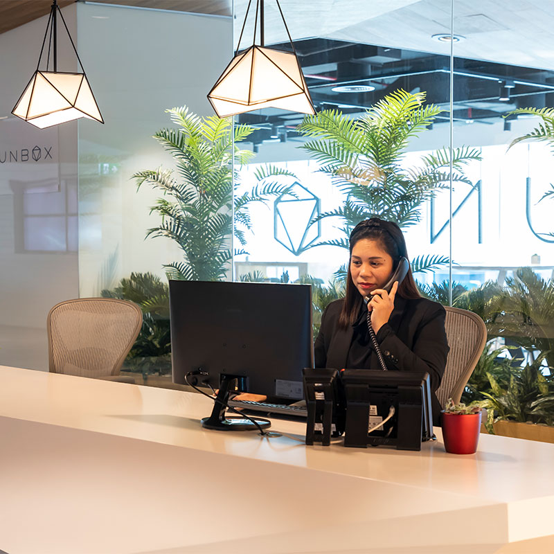 خدمات المكتب الافتراضي، بما في ذلك عنوان عمل احترافي والرد على المكالمات.
